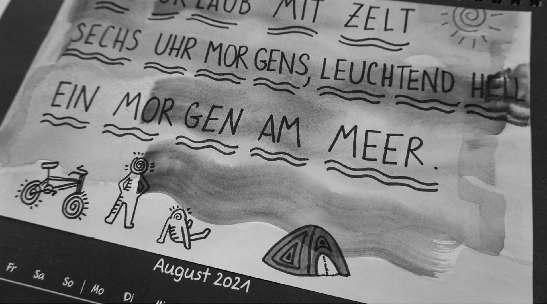 Das fertige Gedicht kannst du in den Kalender übertragen und dazu ein Foto von deiner Ferien-Erinnerung einkleben oder ein Bild malen.