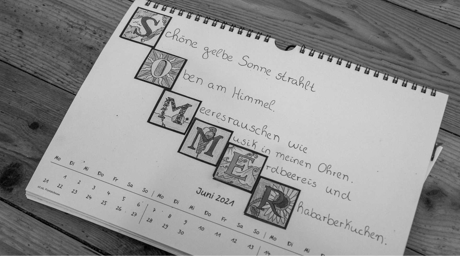Um den Sommer willkommen zu heißen, schreiben wir für ihn ein Gedicht in Form eines Akrostichons. Ein Akrostichon ist ein Gedicht, bei dem die Anfangsbuchstaben der Verse ein eigenes Wort ergeben. Passend zur Jahreszeit haben wir uns das Wort S-O-M-M-E-R ausgesucht.